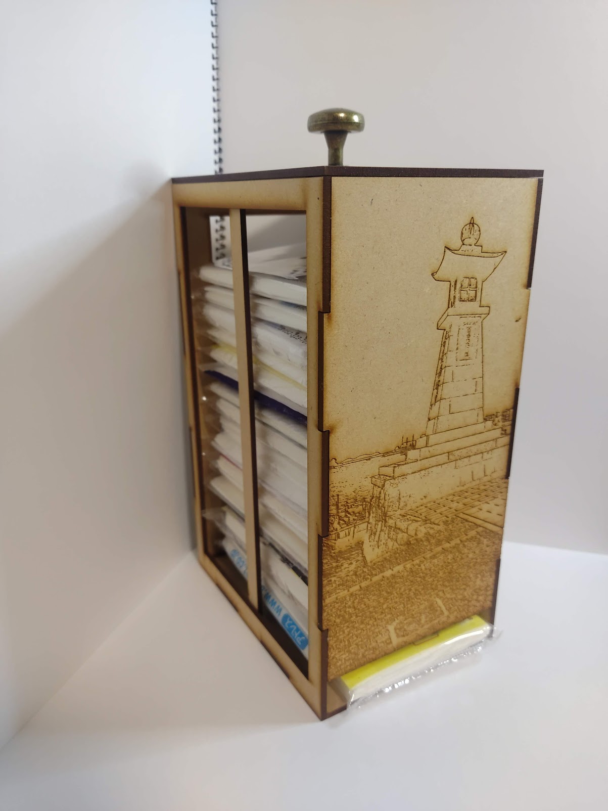 MDFでポケットティッシュケースを作成。 コロナ過前はよく街頭で貰ったものですが、 最近はあまり貰えません。 とはいえ、以前に貰ったものが溜まっているので 保管用にケースを作ってみました。 前面には2016年に蒼穹のファフナーの聖地巡礼で 旅行した鞆の浦にて撮った写真を画像加工し...